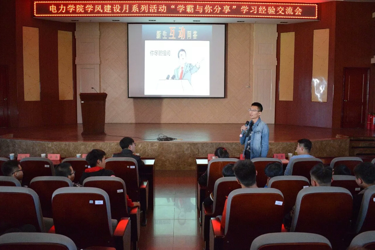 为了加强学风建设,促进学习经验交流。我院于2017年11月2日在电力大楼十楼报告厅举办了学风建设月系列活动“学霸与你分享”学习经验交流会。